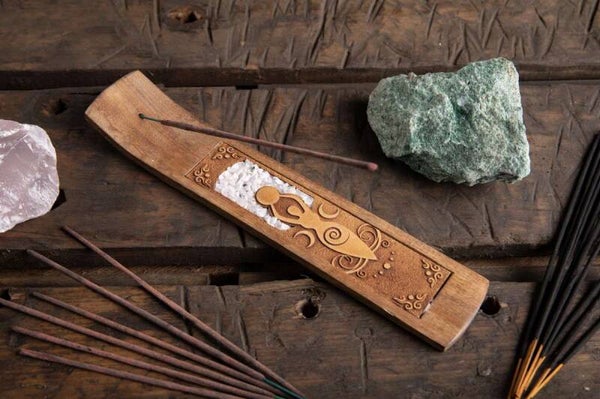 Dieser Halter ist ein besonderer Blickfang in jeder Räumlichkeit. Mit den sehr feinen Gravuren und echten, eingebetteten Mineralien unterstreichet er den edlen Vorgang des Räucherns.