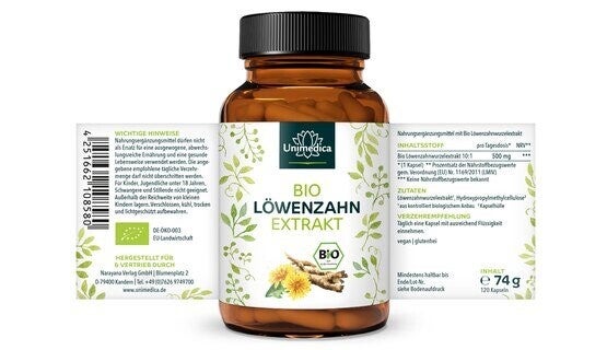 Bio Löwenzahn Extrakt - 500 mg pro Tagesdosis (1 Kapsel) - 120 Kapseln - von Unimedica