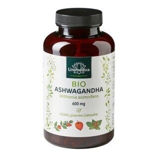 Bio Ashwagandha 180 Kapseln 600 mg hochdosiert - von Unimedica